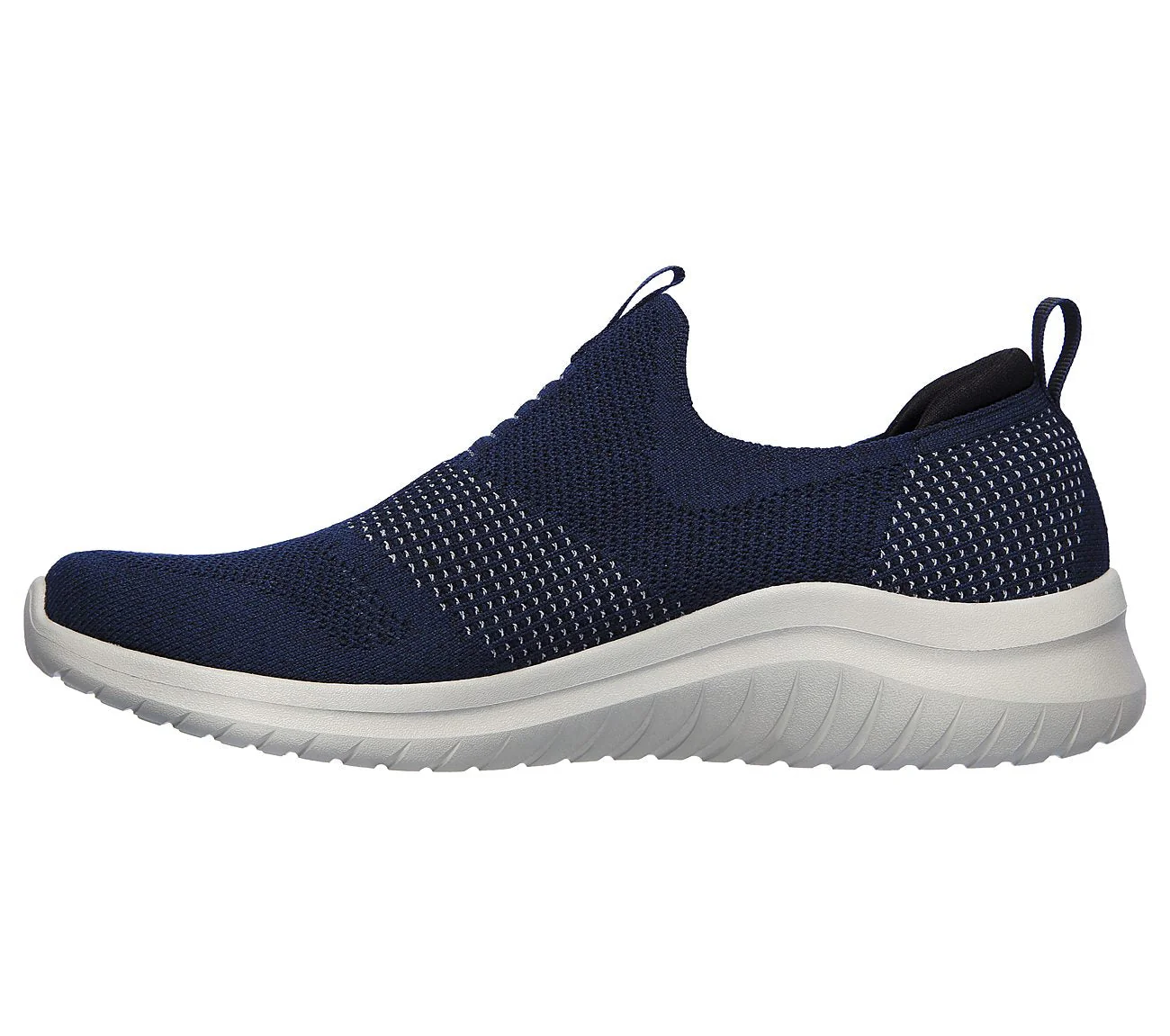 Restez actif dans un confort athlétique élégant avec la chaussure Skechers Ultra Flex 2.0. Cette sneaker Stretch Fit® à enfiler est dotée d’une tige Skech Knit technique avec une semelle intérieure Air-Cooled Memory Foam® et une semelle intercalaire confortable très flexible.