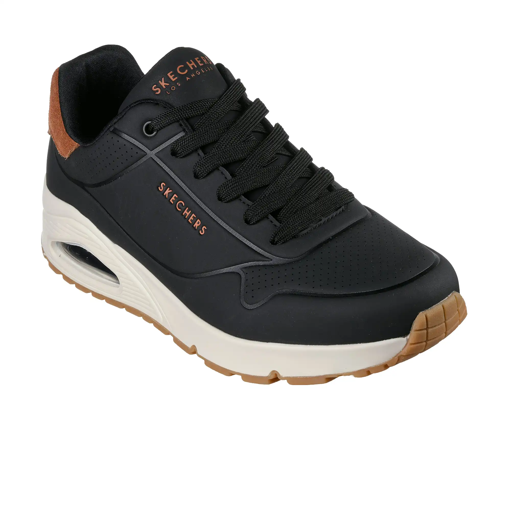 Le style sportif raffiné rencontre le confort dans Skechers Street™ Uno – Suited On Air. Ce style de jogging classique à lacets comprend une tige en durabuck estampée avec une bordure de talon en daim, une semelle intérieure Skechers Air-Cooled Memory Foam® et une semelle intercalaire airbag visible Skech-Air®.