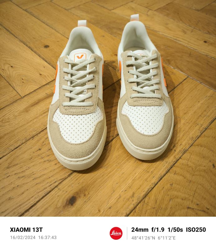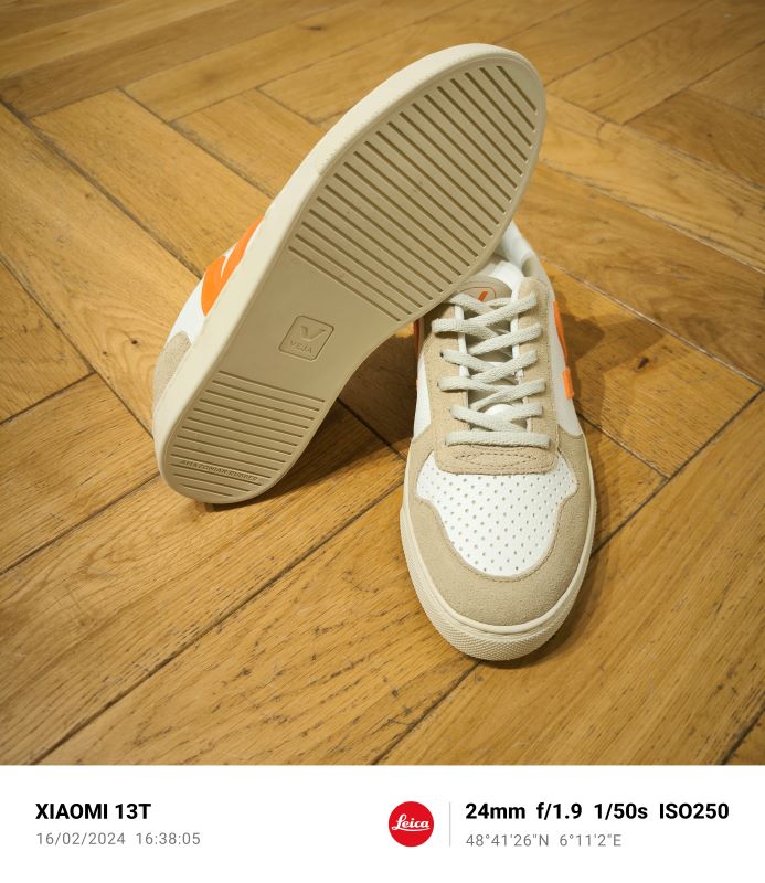 Veja V10 modèle devenu incontournable de chez Veja , décliné cette fois ci sous sa forme traditionnelle dans un joli beige blanc et mandarine .Lacets en coton bio